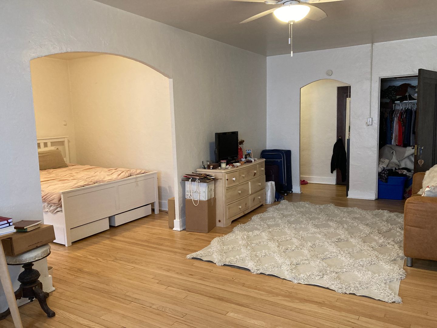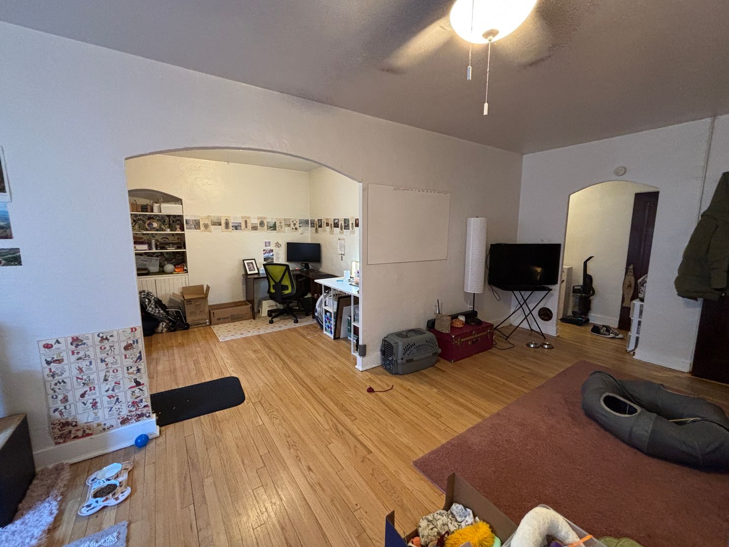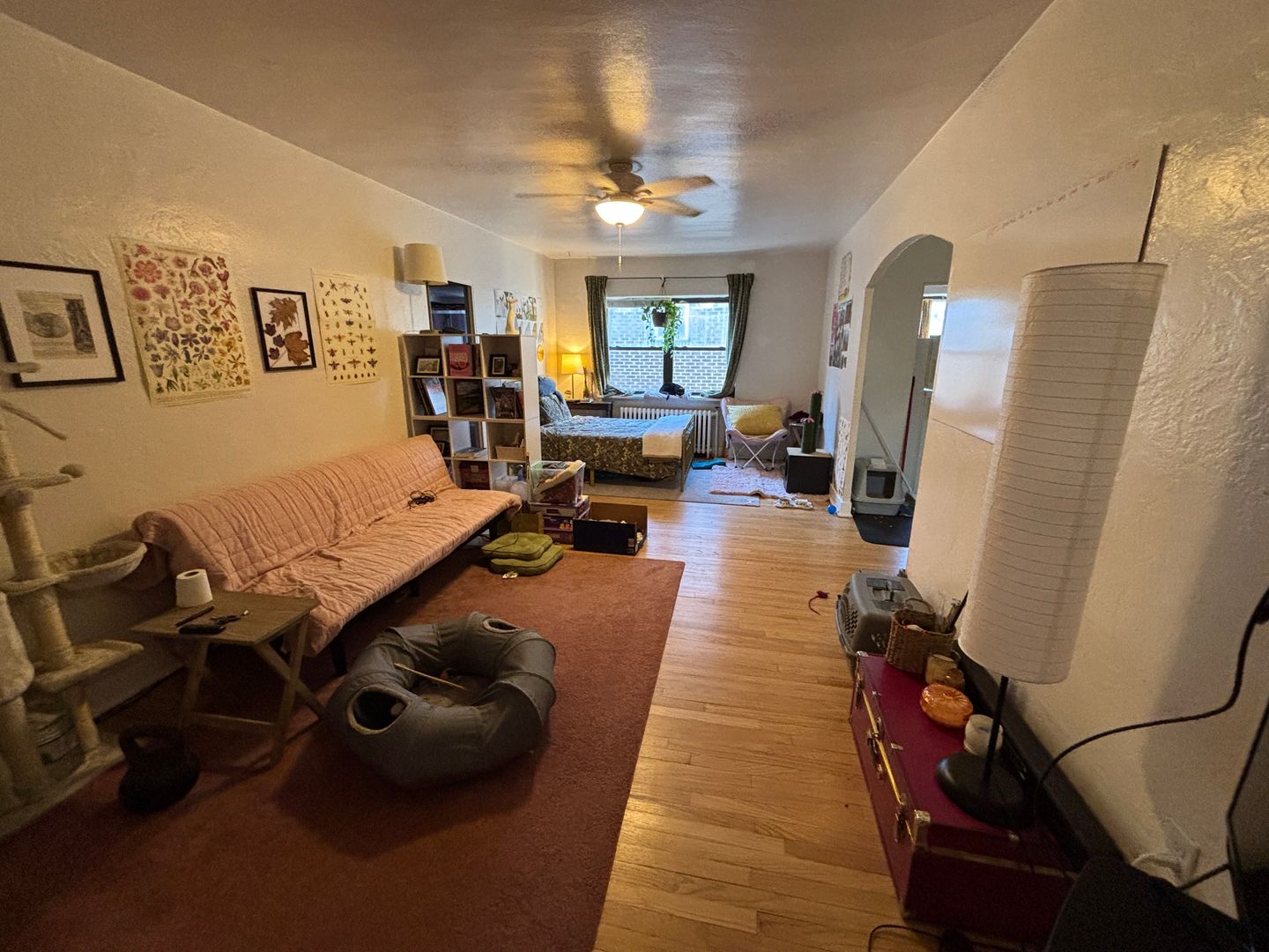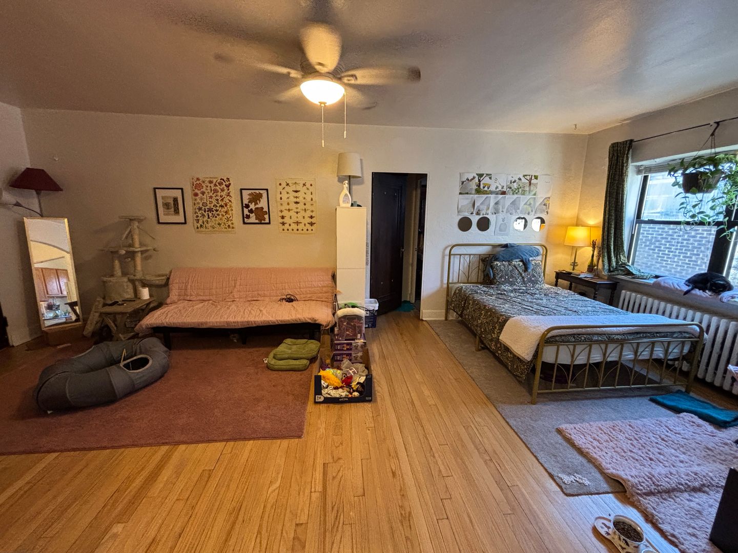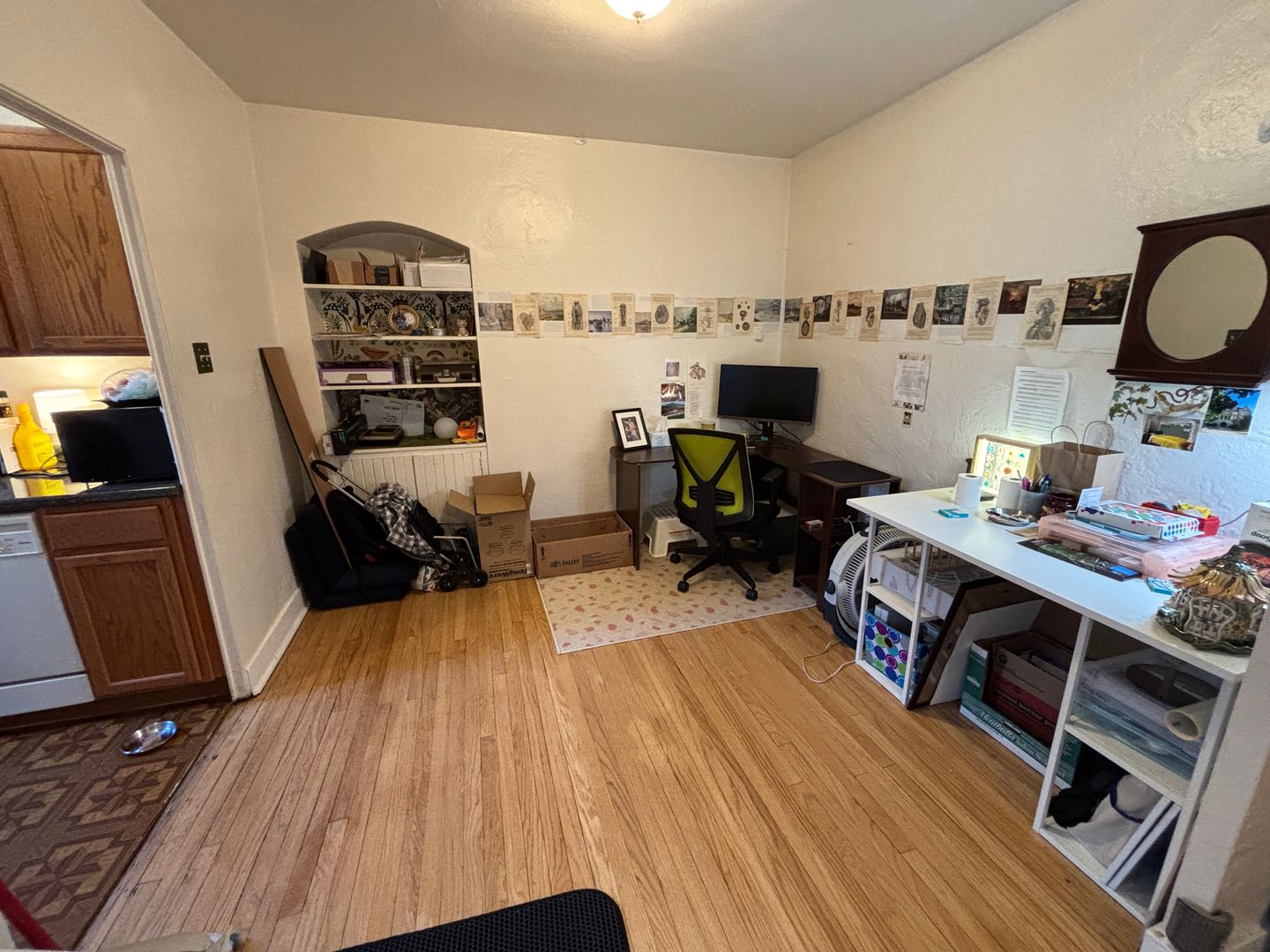 Light and bright Sq Hill apartment on a quiet street close to the shopping district, grocery store, and bus line. Apartments have updated quartz kitchens with dishwashers and tons of cabinetry. There are hardwood floors throughout the apartment including a separate dining room with built in wall units. Some people chose to put bed in dining room to make a bedroom in the studio. Most pictures are of how it looks right now. Photo with bed in dining room is that unit from a past year to show that set up option. There are free storage lockers, shared laundry, free on street parking and garage availability.